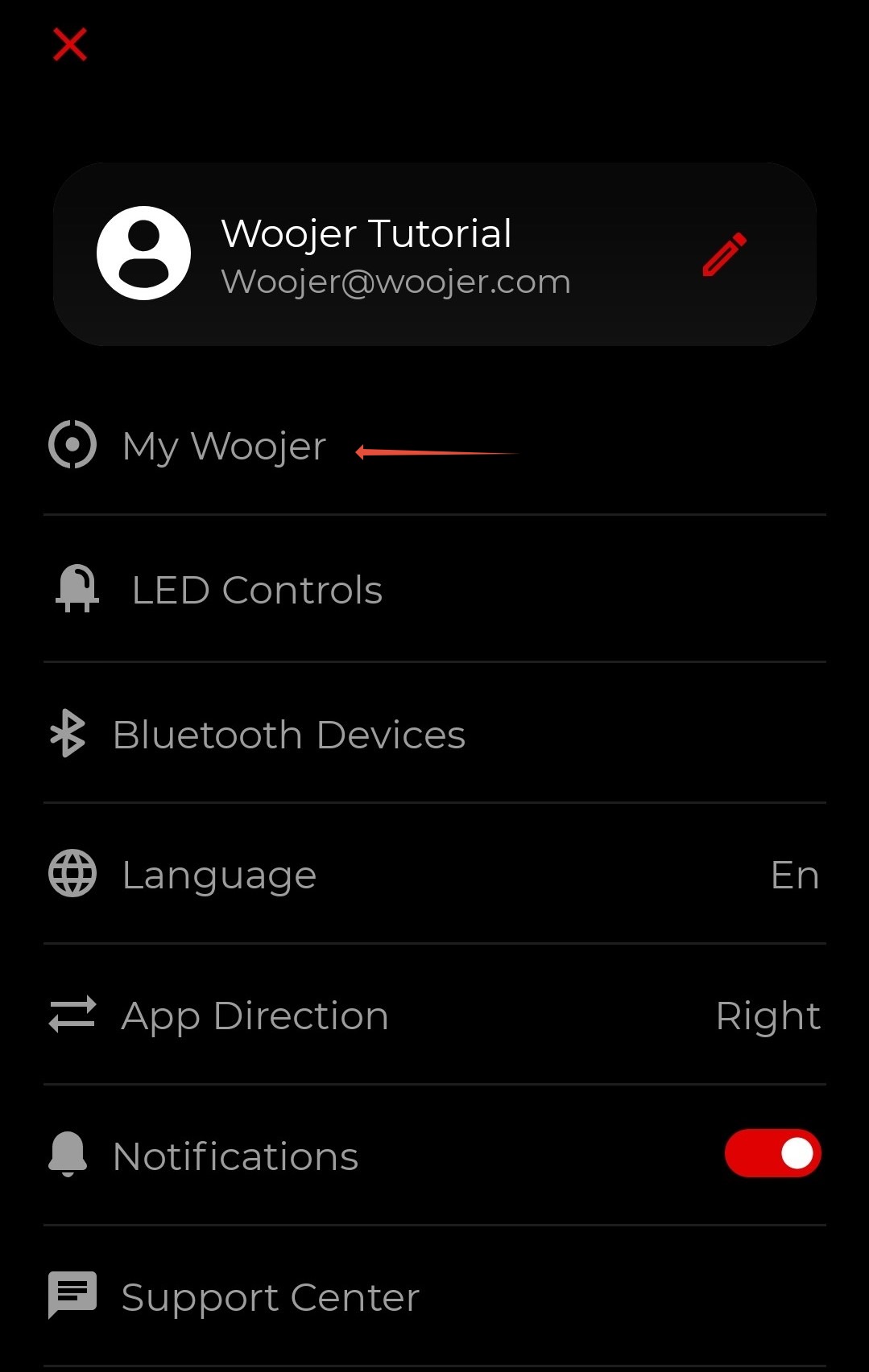 - In the settings screen, select the "My Woojer" option.