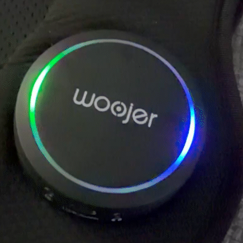 In some rare cases, due to a communication error during the Woojer Vest 4 firmware update, the following situation may occur: After completing the update, the Vest should restart normally, but in this specific scenario, it fails to recover and instead shows the following LED pattern, with an alternating red-blue on one side and blinking green on the other.
